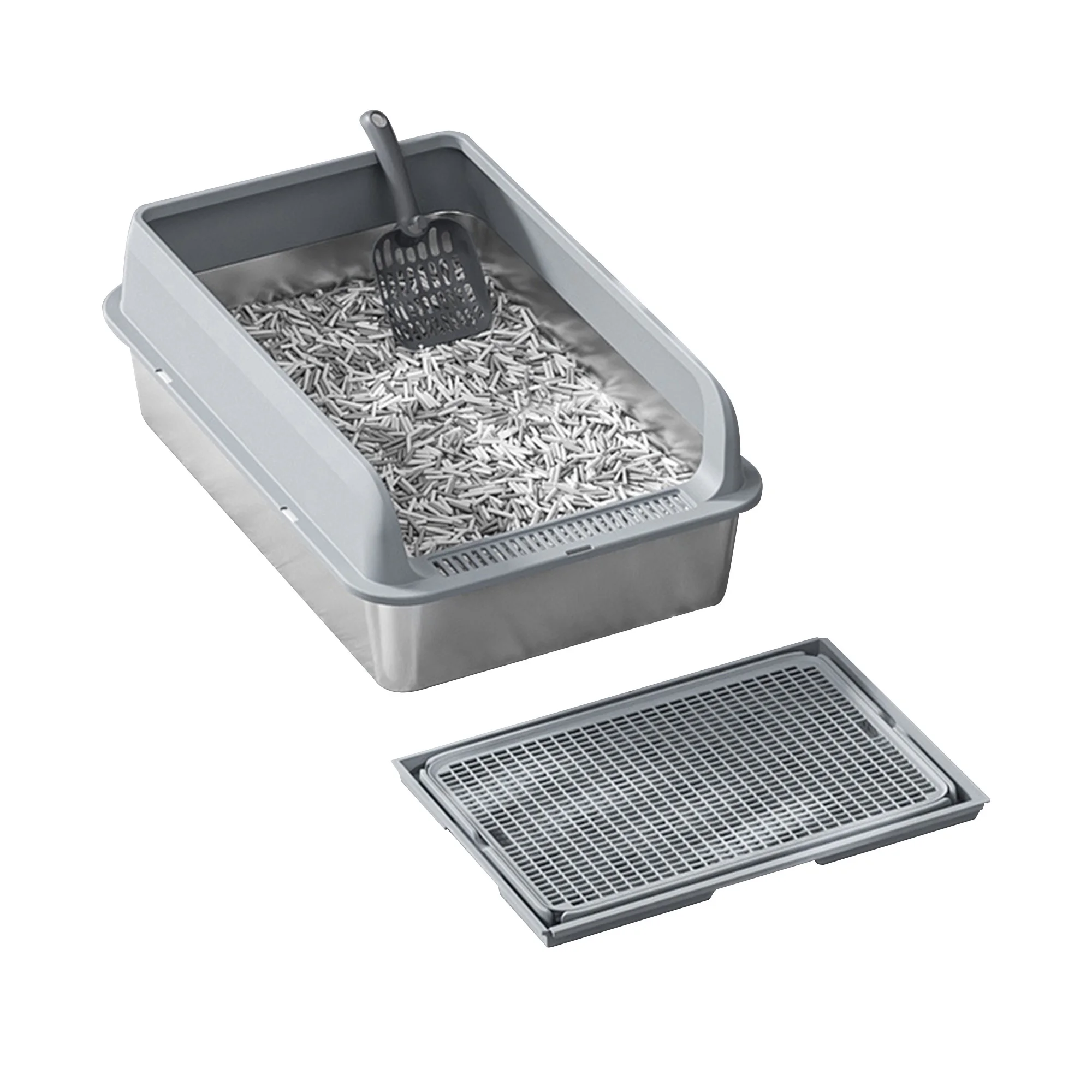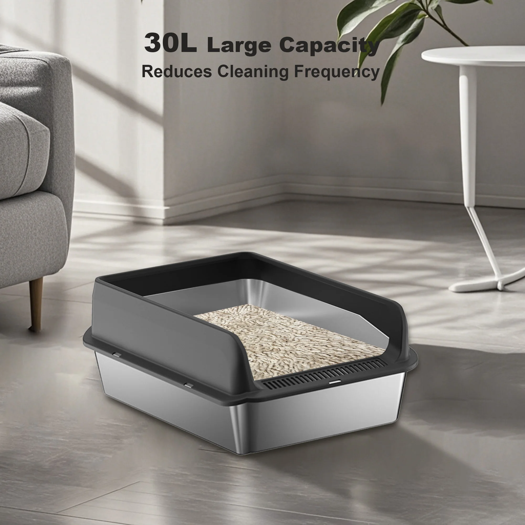 Sturdy Construction: Crafted from premium stainless steel, this cat litter box is resistant to rust and easy to clean. Its smooth surface allows for effortless rinsing or wiping. Thanks to its electrolytic finish, litter won't stick to the bottom.