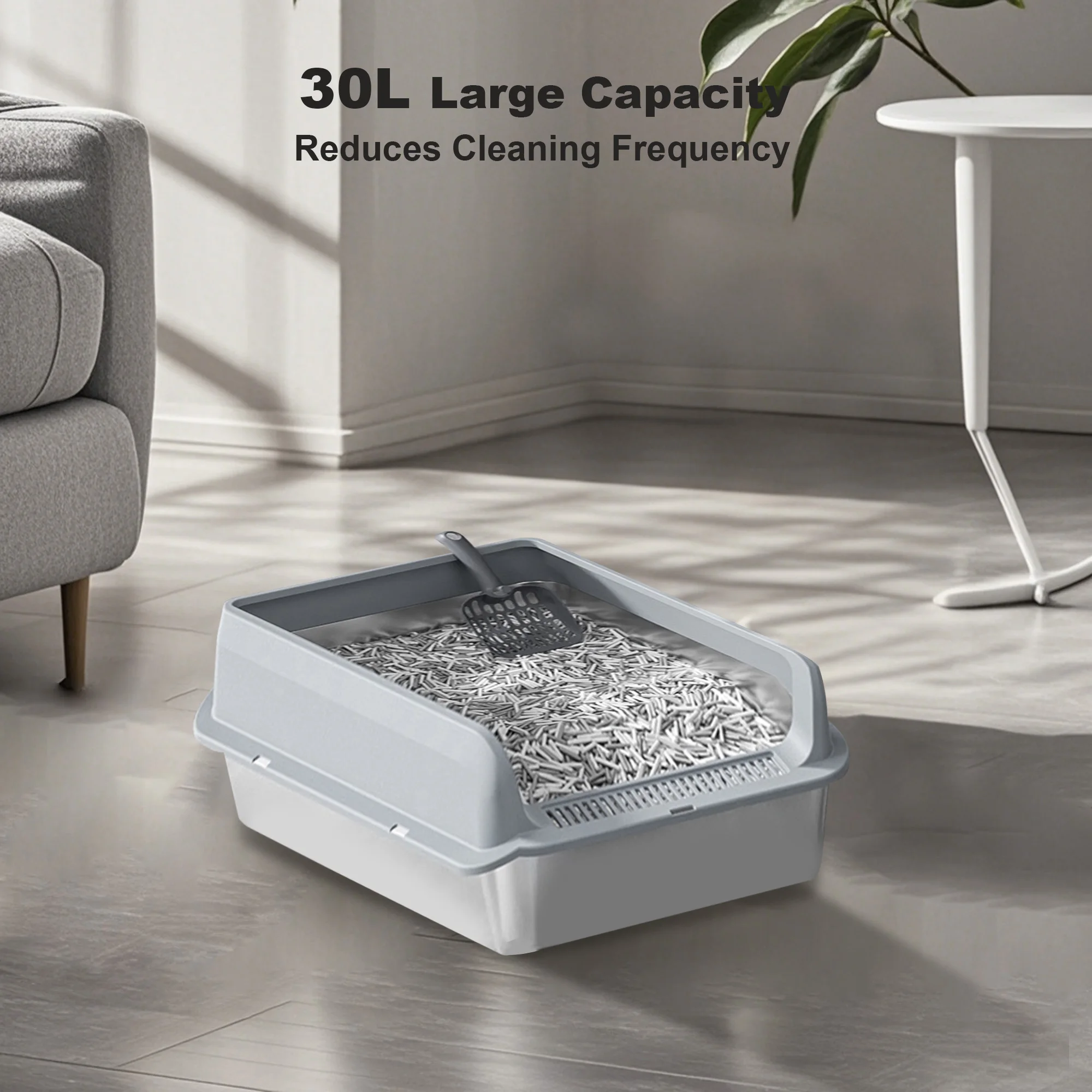 High Capacity: Measuring 60x40x20cm (or 60x40x25cm), this litter box offers ample height and capacity, providing plenty of space for your feline friend. With the ability to hold over 30L of litter, it can accommodate your cat's needs for 3-5 days.
